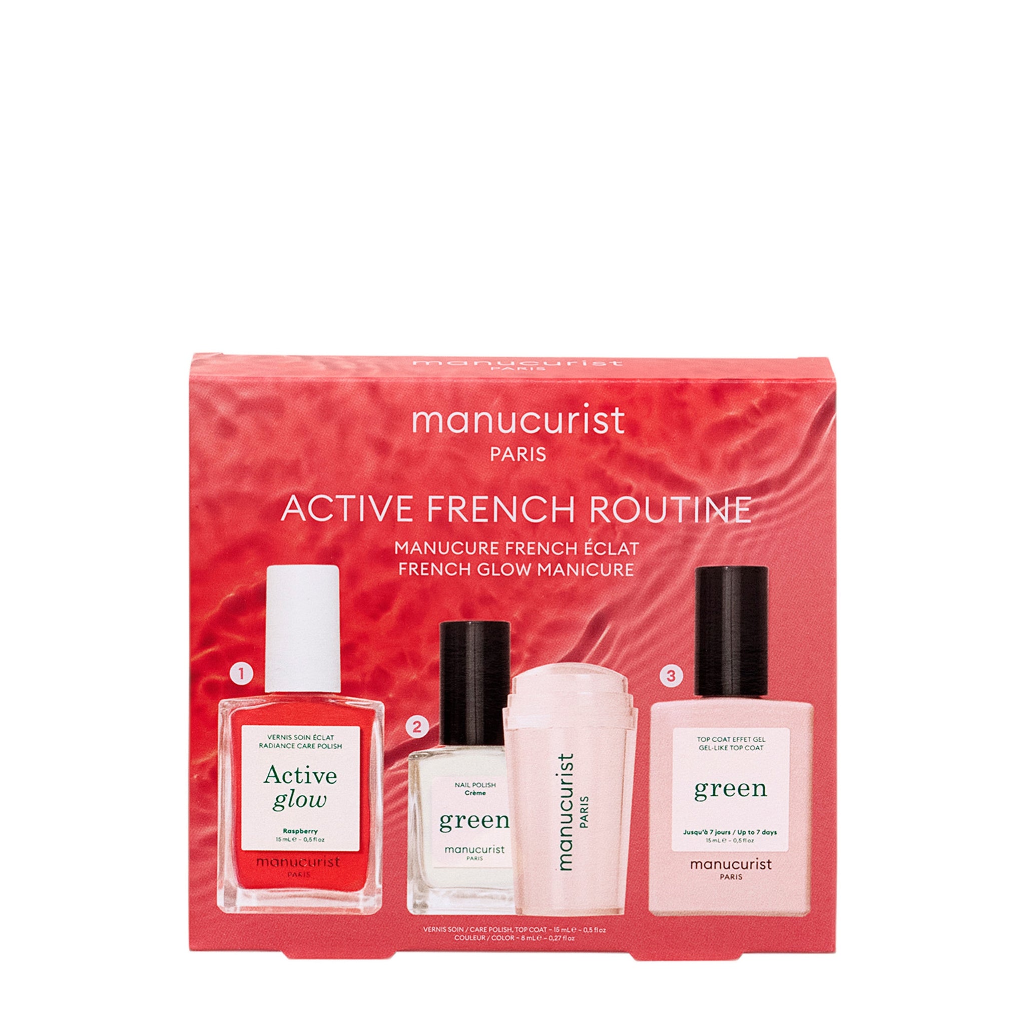 ethyl acetate, butyl acetate, nitrocellulose, adipic acid/neopentyl glycol/trimellitic anhydride copolymer, acetyl tributyl citrate, alcohol, glycolic acid, caprylic/capric triglyceride, etocrylene, prunus amygdalus dulcis (sweet almond) oil, ci 15850 (red 6 lake), isopropyl alcohol, lactobacillus ferment, rubus idaeus (raspberry) leaf extract, tocopherol