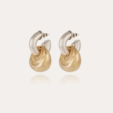Náušnice, složené z postříbřeného kruhu a velkého pozlaceného kroužku.